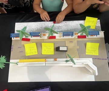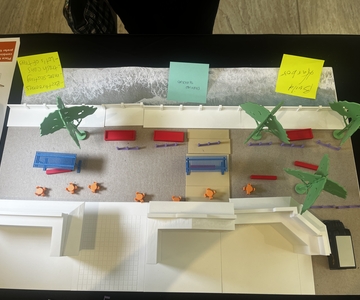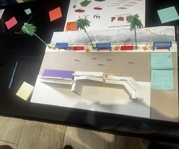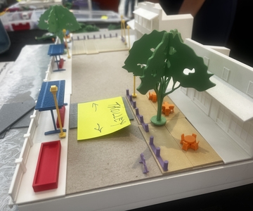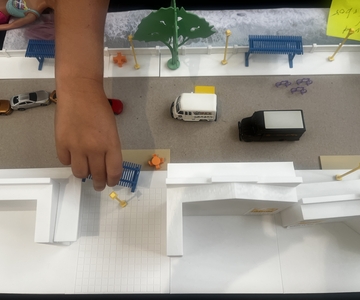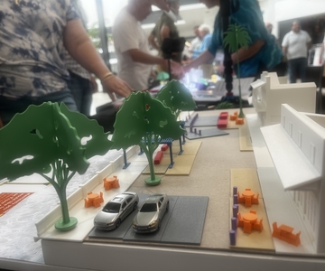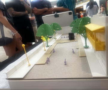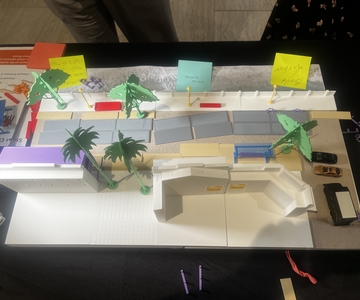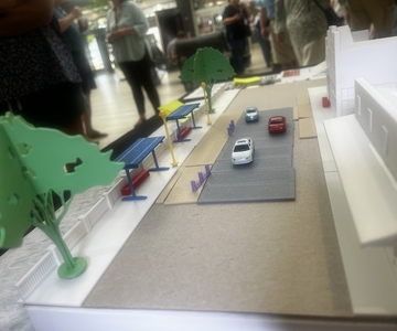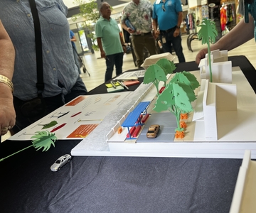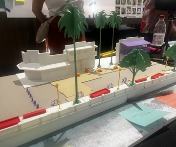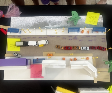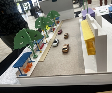 Attendees at the in-person Open House on September 30 were encouraged to use 3D model pieces to design their version of Front Street and show how the pedestrian experience could be improved using different shade elements. Photos of their models are included in this gallery.