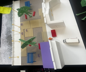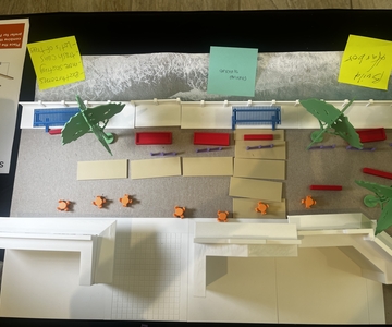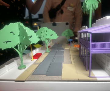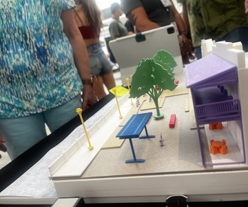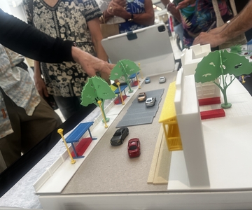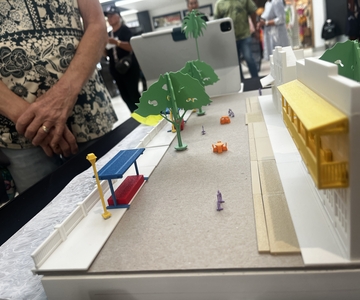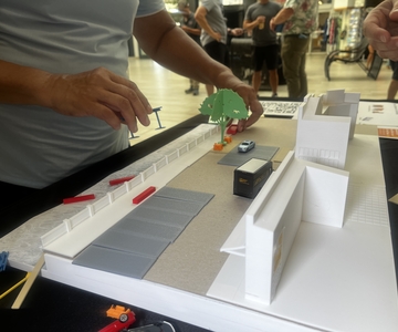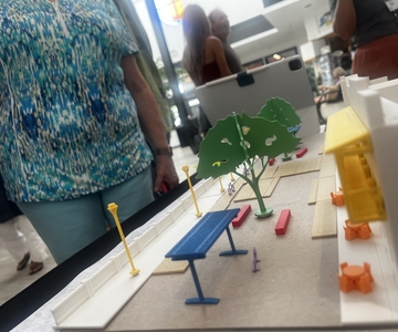 Attendees at the in-person Open House on September 30 were encouraged to use 3D model pieces to design their version of Front Street and show how the pedestrian experience could be improved using different shade elements. Photos of their models are included in this gallery.